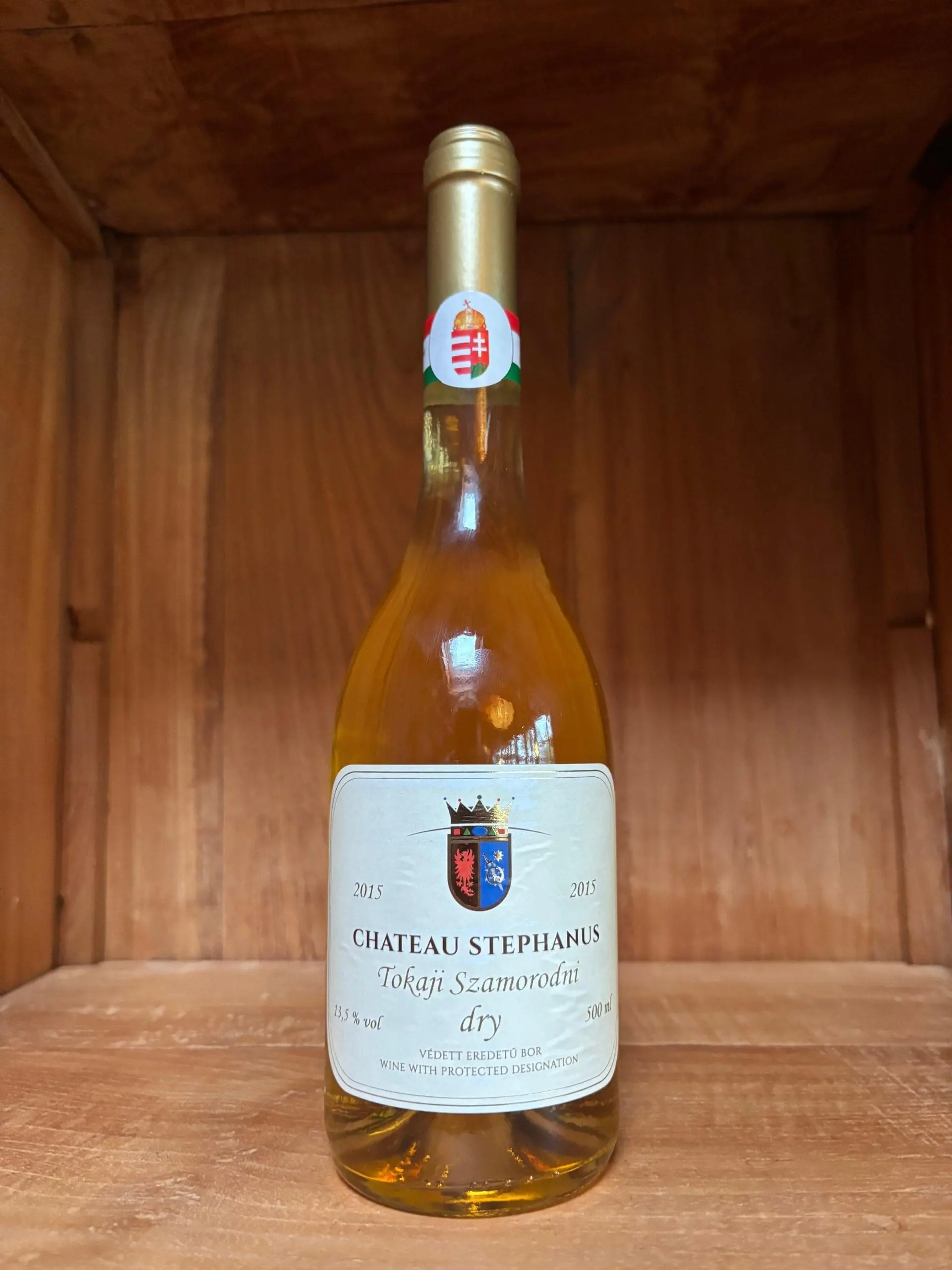 Deze Chateau Stephanus Tokaji Szamorodni dry is een fraaie, amberkleurige droge szamorodni met intense aroma’s van groene walnoot en amandel. Deze zeldzame droge Chateau Stephanus Szamorodni is gerijpt in eiken houten vaten.